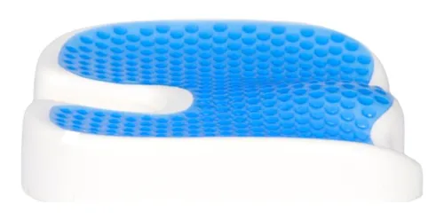 Almofada ortopédica anatômica para cóccix em espuma viscoelástica e bolhas de silicone gel.