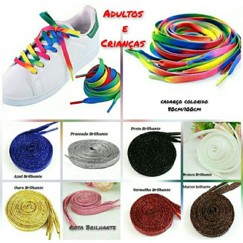 Cadarços brilhantes coloridos adultos e crianças