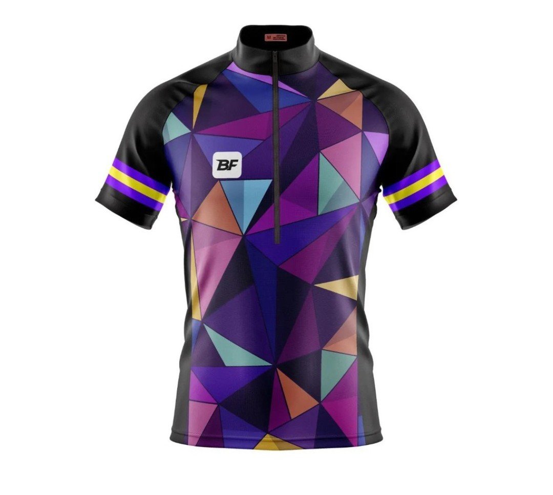 A camisa mosaico é confeccionada em Dry Fit que mantém o corpo seco e a temperatura estável.