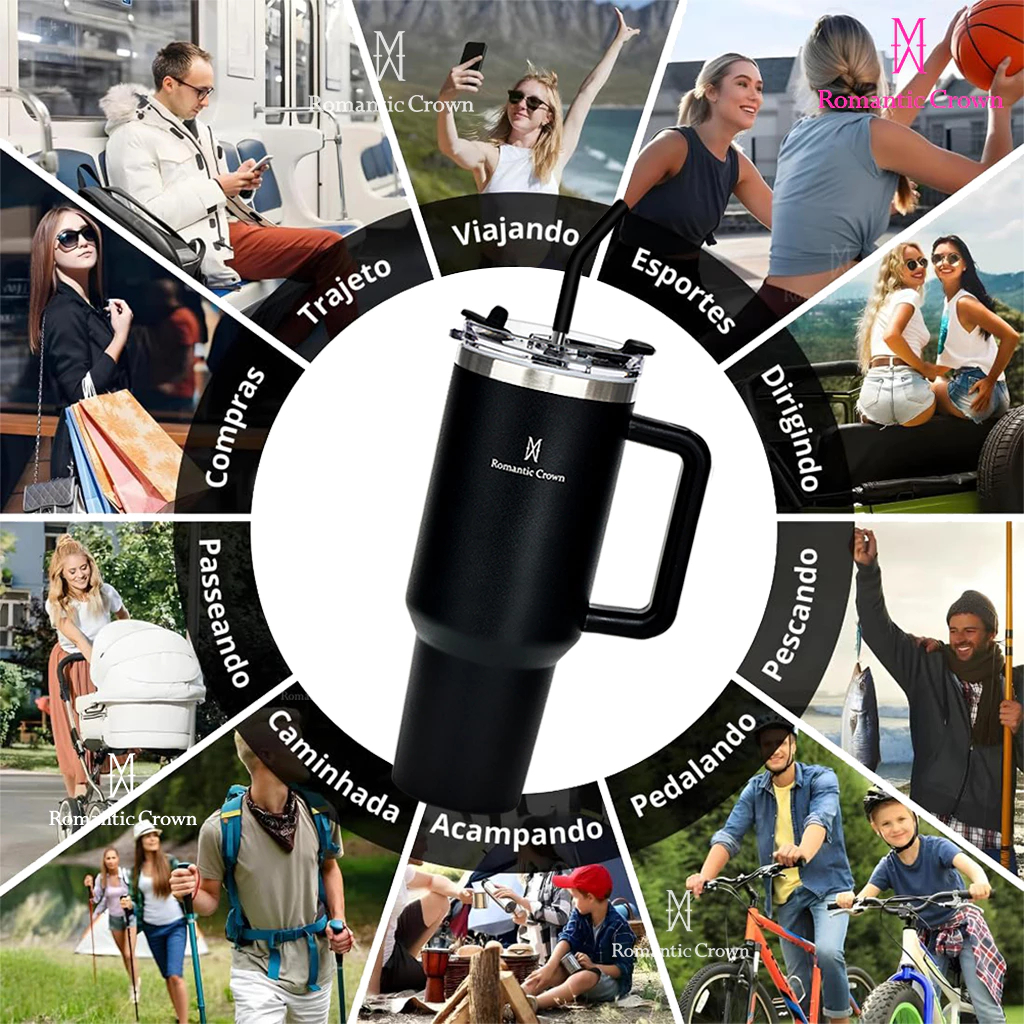 Copo Térmico Inox Portátil 1200ml com Tampa e Canudo