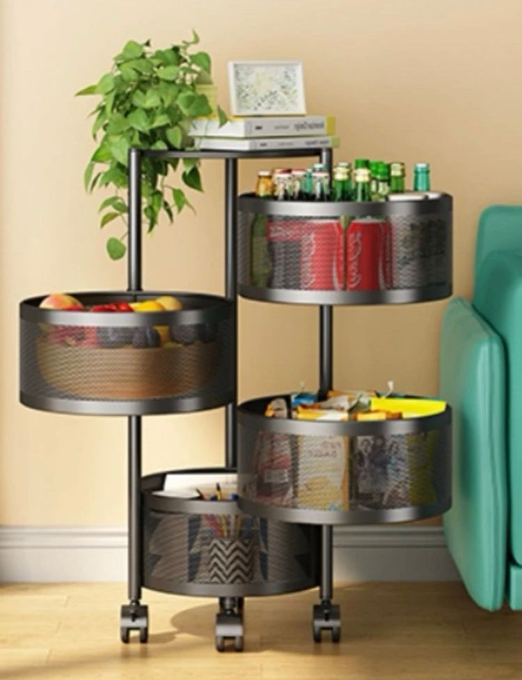 Fruteira Redonda Giratória 4 Andares com Rodinhas Preta