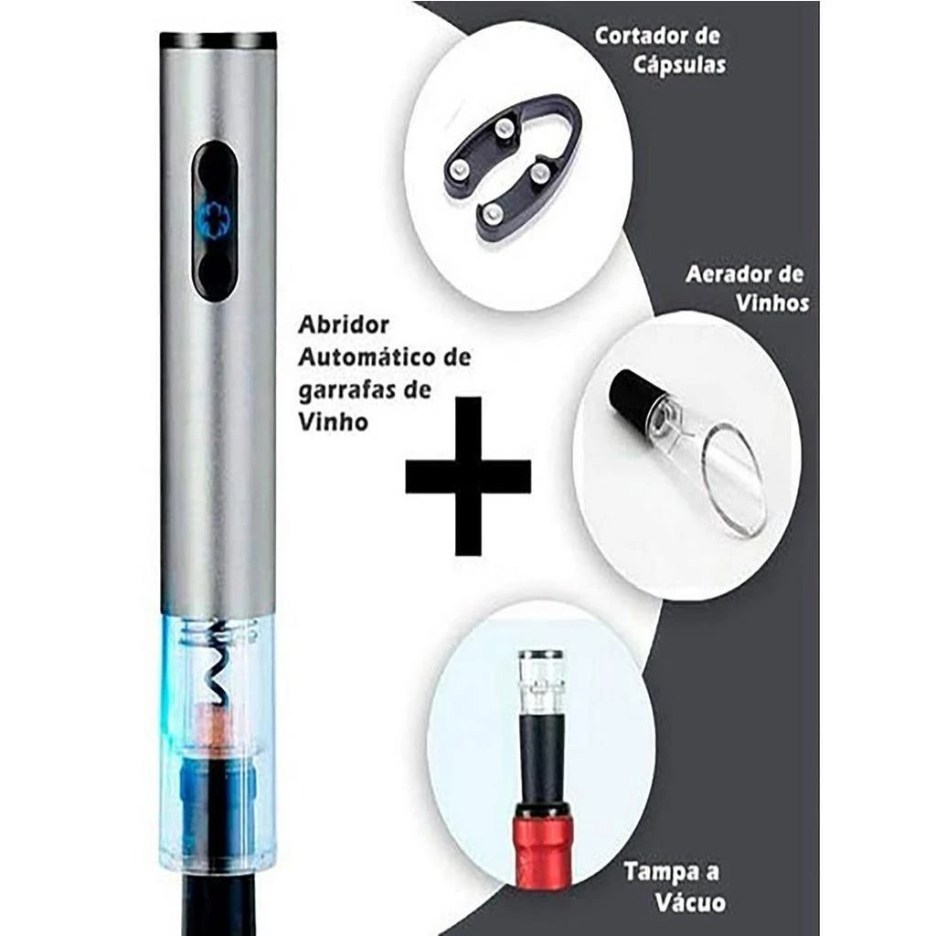 Kit Abridor de Vinho Elétrico 4 Peças – Saca Rolha Automático e Acessórios