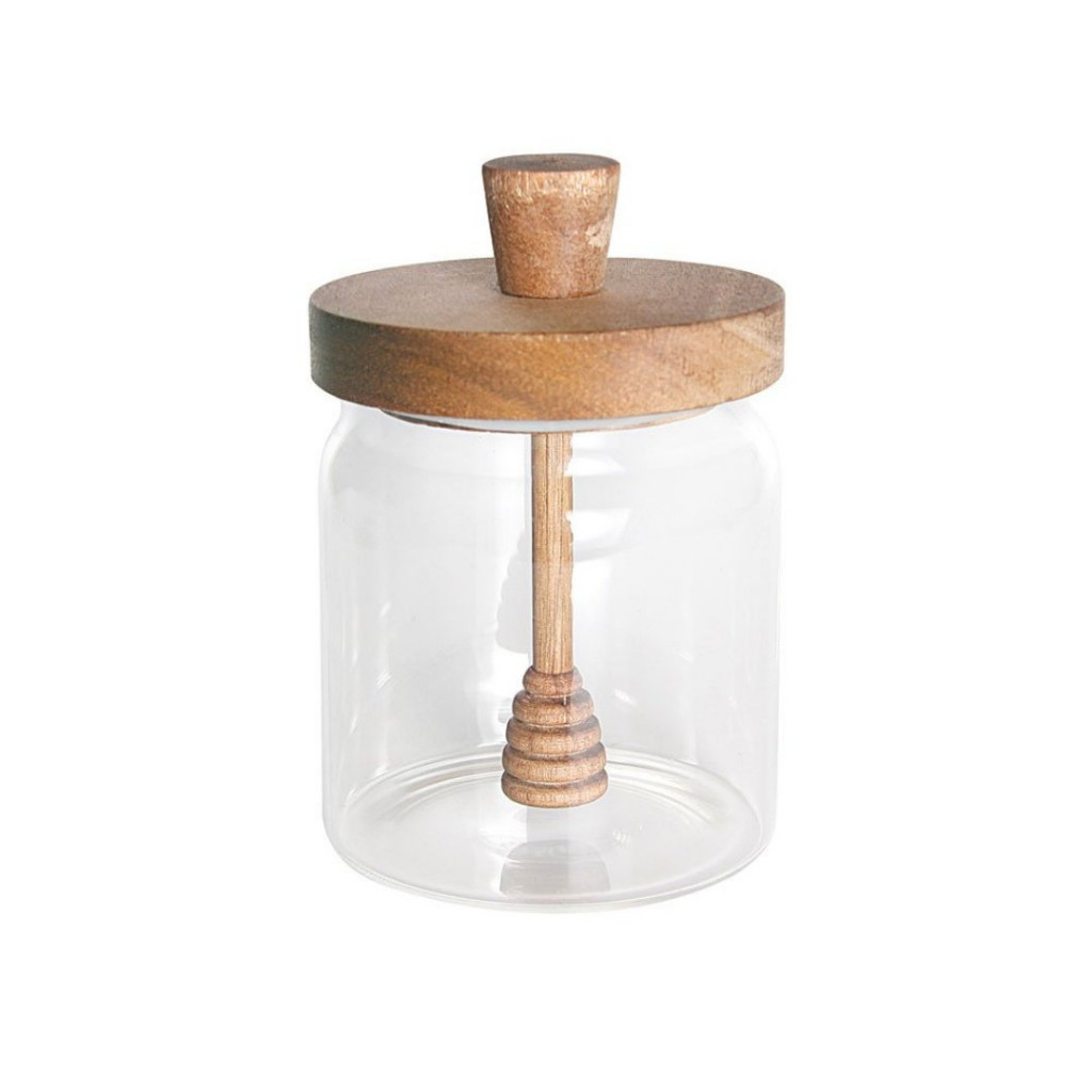 Nossa meleira de vidro borossilicato com tampa de acácia é perfeita para quem busca praticidade sem abrir mão da elegância na cozinha!
