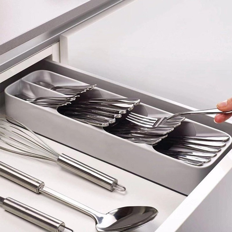 Esse porta talheres é compacto e economiza espaço na sua gaveta.