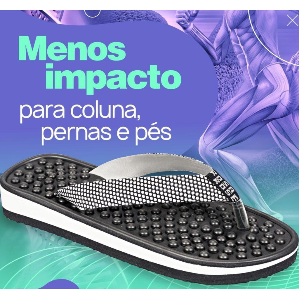 O Chinelo ortopédico para esporão, e dores nos pés, tem esferas massageadoras, que, além de ser extremamente macio, massageia os terminais nervosos na planta dos pés ativando a circulação sanguínea, melhorando também as dores do esporão de calcâneo e a Facite Plantar.
